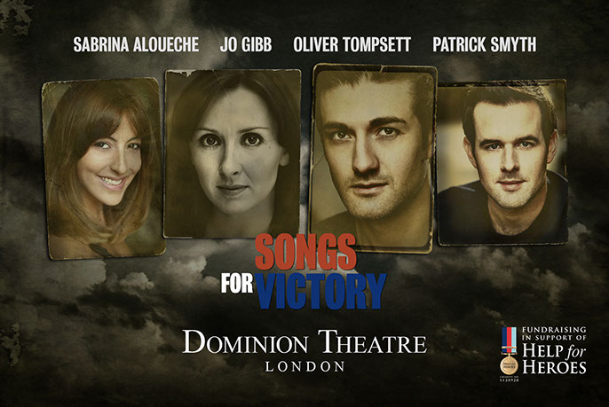 Songs for Victory appeared at the Dominion Theatre, London as part of West End Heroes 2014. Accompanied by the Central Band of the Royal Air Force and RAF Squadronaires, hosted by Michael Ball, performing alongside West End Shows such as Miss Saigon and Evita, Songs for Victory helped raise over